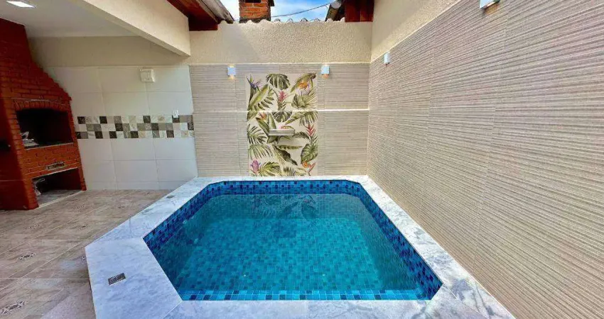 Linda casa TOTAMENTE REFORMADA, piso em porcelanato, contendo 2 quartos sendo 1 suíte, sala ampla integrada com cozinha, lavabo na área externa com churrasqueira, piscina e garagem para 2 veículos.