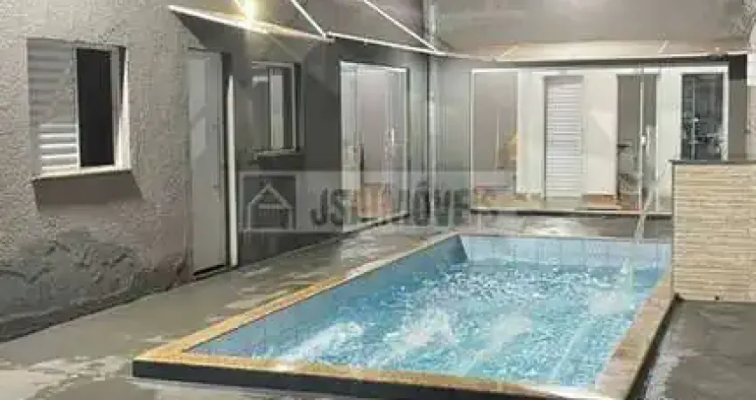 2 suítes Área de churrasco com 2 banheiros Cozinha com armários Varanda e área de serviço Piscina aquecida de 6x3m com cascata e hidromassagem Terreno de 225m² e área construída de 100m² Garagem para 3 carros