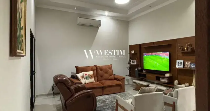 2 dormitórios(1 tipo apto) ambos com armários planejados e ar condicionado, sala ampla com pé direito alto, sala de jantar (pode ser convertida num terceiro dormitório), banheiros social e da suíte com pia com gabinete e box em vidro, cozinha planejada, área de serviço, jardim de inverno, espaço gourmet com churrasqueira, ar condicionado (5), 1 ventilador de teto, piso em porcelanato, garagem pra 2 carros.