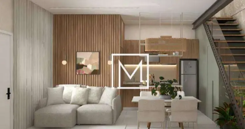 Configurado com 2 quartos, banheiro, sala com cozinha integrada, e 1 vaga de garagem