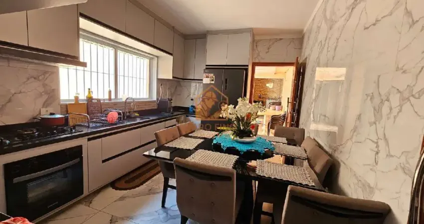 Casa Sobrado, com dois dormitórios, sendo um deles com móveis planejados, três banheiros e cozinha equipada com armários planejados, oferecendo praticidade e bom aproveitamento do espaço. A sala é espaçosa e integrada à área de refeições, com acabamento moderno e piso de qualidade.