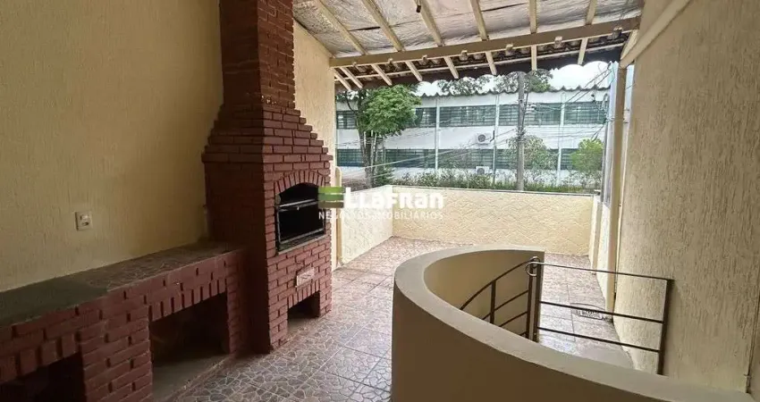 Na garagem coberta, possui uma escada caracol, de acesso ao quintal e área gourmet com churrasqueira e balcão, conforme demonstrado em foto.