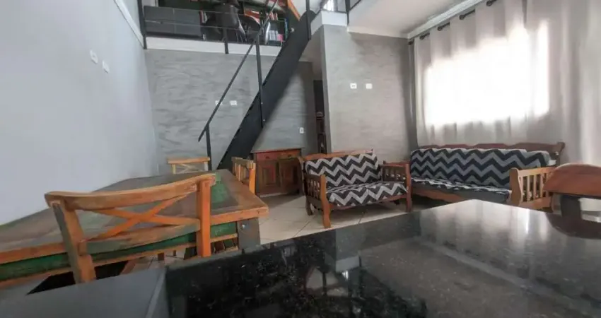 Sala para 2 ambientes com pé-direito duplo, proporcionando ótima iluminação e ventilação natural