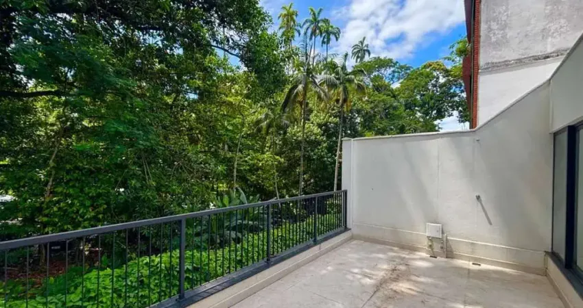 Linda cobertura no coração do Jardim Botânico composta de 2 quartos sendo 1 deles suíte com vista para a mata do Parque Lage, ampla sala em 2 ambientes com vista para o verde, cozinha integrada a sala, banheiro social, escada linear de acesso ao segundo andar com degraus em madeira onde encontra-se a suíte com terraço amplo e agradável com vista para o Parque Lage. Acesso por escada.