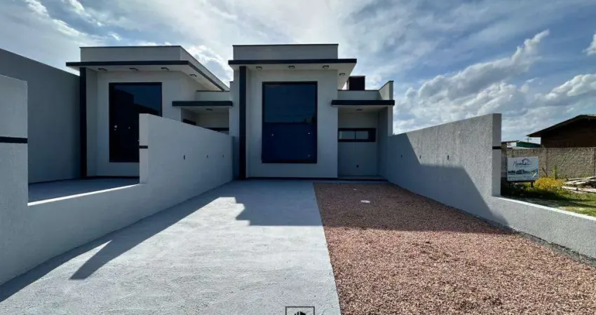Casa nova no centro de Imbé, composta por 02 dormitórios sendo 01 suíte, banheiro social, sala de estar e jantar com pé-direito elevado, cozinha, área de serviço e vaga de garagem.