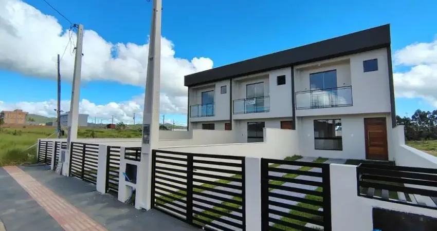 Sobrado, com 75m² de área construída, situada no loteamento Governador Celso Ramos. O imóvel conta com duas suítes, além de ambientes bem distribuídos e ótima iluminação natural.