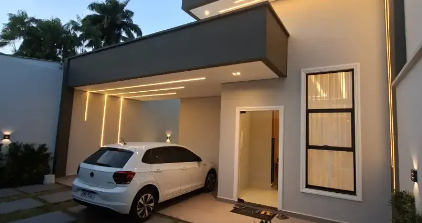 Casa com três quartos sendo duas suítes, uma semi suíte, sala em dois ambientes, cozinha interna.