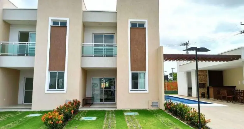 VILLAS ROSE RESIDENCE CASAS DUPLEX AQUIRAZ,A 3 minutos do centro de Eusébio(Pavimento Térreo)-Sala de Estar e Jantar, -Cozinha Americana,-Área de Serviço,-Quarto,-Banheiro Social,-Varanda Frente,(Pavimento Superior)-Suite 01,-Suíte de Casal com Varanda,Vagas de Garagem: 02Área Comum:-Piscina Adulto e Infantil,-Parquinho Infantil,-Deck Equipado,-Churrasqueira,-Guarita Elevada com Eclusa,