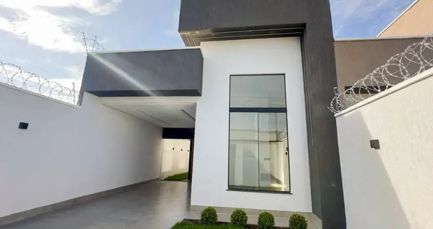 Casa de 117m² com 03 quartos, sendo 01 suíte, 02 vagas de garagem e ambientes integrados. Possui área gourmet com churrasqueira a carvão e ilha, piscina com cascata e hidromassagem, além de lavabo externo. Conta com pé-direito alto, projeto luminoctenico, paisagismo, portão eletrônico, concertina e cerca elétrica, oferecendo conforto, modernidade e segurança.