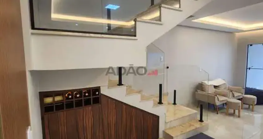 O imóvel possui 300m² de área total, com três suítes e três quartos. Há quatro banheiros disponíveis na propriedade. O sobrado conta com quatro vagas de garagem.