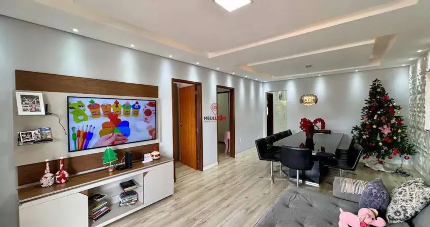 - Sala ampla para dois ambientes, com parede com detalhes em gesso, teto rebaixado e iluminação embutida;