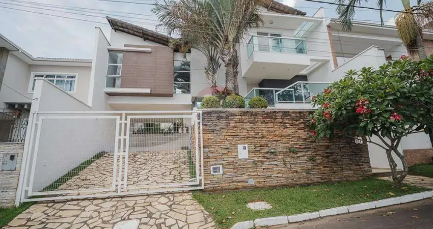 Agora, vamos nos voltar para a casa em si. Essa residência foi projetada com muito carinho pelo arquiteto Gustavo D'Agosto. Ao adentrar a casa, você será recebido por uma sala ampla com pé direito duplo, proporcionando uma sensação de espaço e luminosidade. O ambiente é aconchegante. Uma lareira adiciona um toque acolhedor para os dias mais frios. Um lavabo está convenientemente localizado para atender às necessidades dos moradores e convidados.