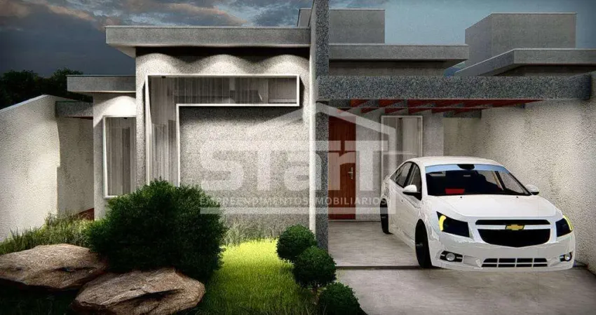 Linda casa em bairro com grande crescimento e valorização! Casa com arquitetura moderna! Sendo um pavimento! com três quartos; uma suíte; um banho social; sala de estar integrada; cozinha; sala de jantar; lavanderia; garagem com pergolado; corredor com pergolado coberto. Casa em construção!
