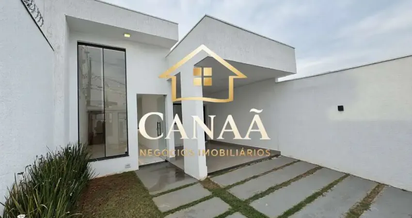 A DestaQ Imóveis apresenta essa Excepcional Casa nova com projeto inovador composta por: 03 quartos, com 01 suíte master, possui uma sala com pé direito alto, 02 vagas de garagem e um quintal bem espaçoso todo gramado.