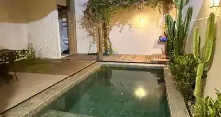sala ampla de estar e jantar, jardim de inverno, lavabo social, cozinha, área gourmet com churrasqueira, piscina com cascata e hidromassagem, lavanderia, quintal com pergolado