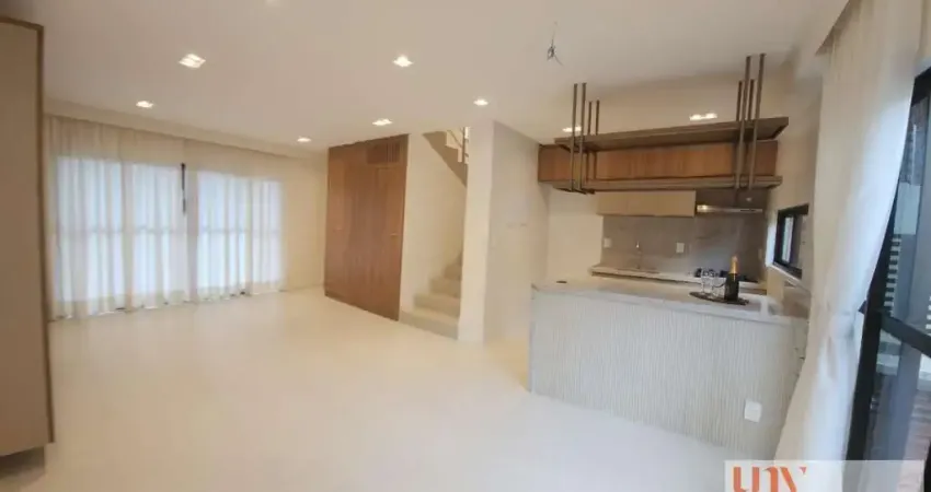 Pavimento inferior: Varanda frente e área externa nos fundos com deck de madeira e espaço para churrasqueira elétrica. Cozinha com projetados, cooktop, forno e depurador instalados. Sala de estar, jantar e lavabo. Projeto de iluminação, cortinas, pré instalação para split, projetados e 1 vaga de garagem.