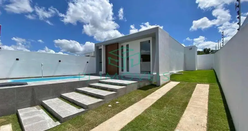 Casa com 03 quartos sendo 01 suíte, sala para 02 ambientes, circulação, banheiro social, cozinha, área de serviço, e vaga de garagem. quintal amplo possui lateral livre e piscina com iluminação em led.