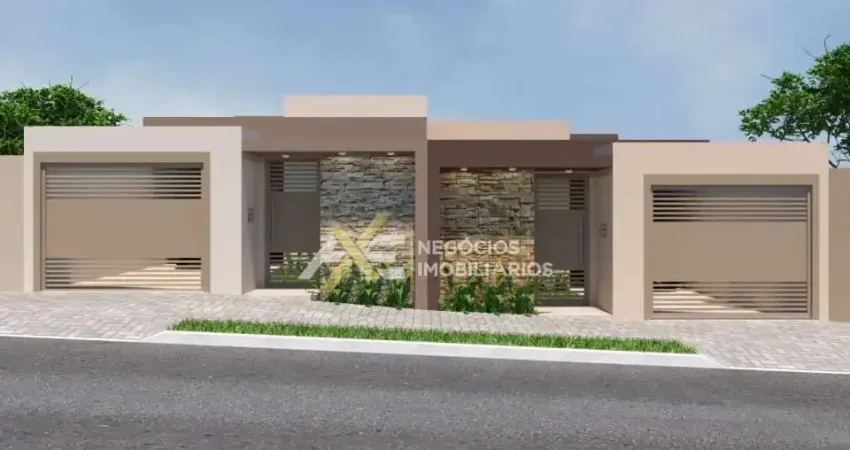 2 vagas de garagem, 3 quartos ( sendo 1 suíte ), 1 banheiro social, área de churrasqueira, lavanderia coberta. Casa em construção;