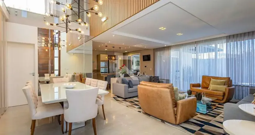 Térreo: Ampla sala de estar integrada à sala de jantar e cozinha, com excelente iluminação natural. Home Theater privativo, lavabo, lavanderia, dois depósitos e jardim externo com espaço gourmet completo. Piscina aquecida com spa, perfeita para relaxar em todas as estações.