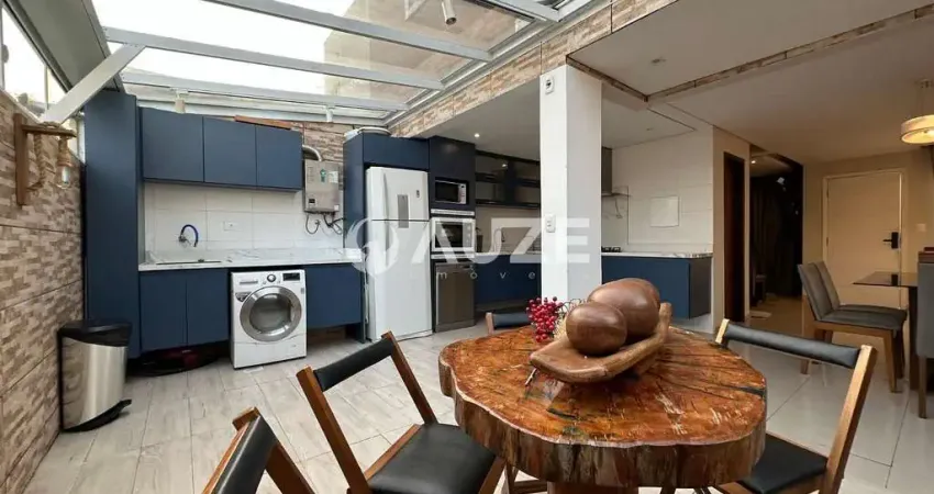 Cozinha em conceito aberto, integrada à área de serviço e à churrasqueira