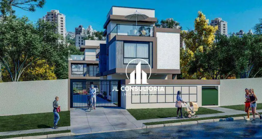 Sobrado no Uberaba, com previsão de entrega para março de 2026. Distribuído em 3 pavimentos, sendo no térreo; sala para 2 ambientes, cozinha, lavabo e espera para lavanderia. No primeiro pavimento, são 3 quartos sendo 1 suíte e banheiro social. chegando ao segundo pavimento temos; banheiro, sala intima e amplo terraço descoberto. São 124 m² de área construída e +- 30 m² de terraço. Agende a sua visita com um de nossos corretores. Valores e disponibilidade podem sofrer alterações sem aviso prévio.