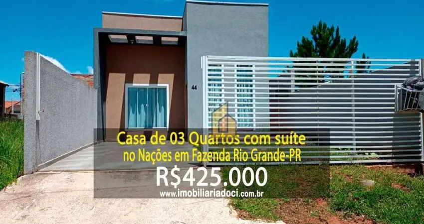 Casa de 03 quartos com Suíte no Nações em Fazenda Rio Grande-PR - A venda por R$425.000,00