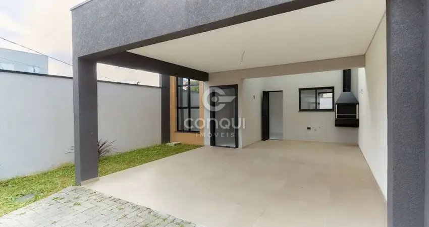 Casa térrea nova no Águas Belas em São José dos Pinhais, 3 quartos, sendo 1 suíte com espaço para closet, 104,87m² privativos em terreno plano de 210m² e 3 vagas.