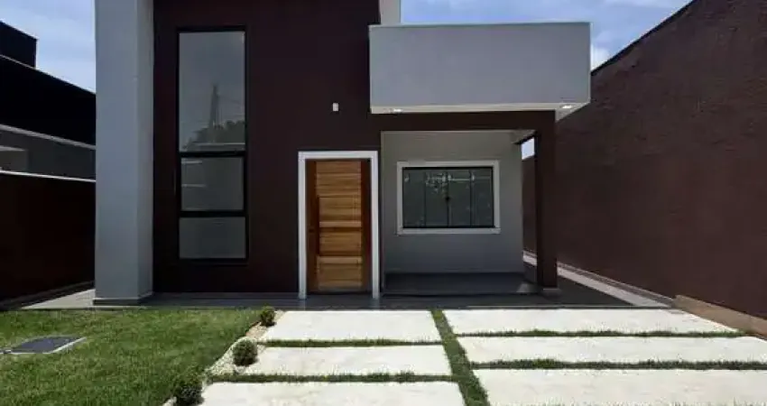 No exterior possui varanda, Churrasqueira, área de serviço e um amplo terreno gramado com 300m² de área total e aproximadamente 114,50m² de área construída com vagas de garagem para 2 carros.