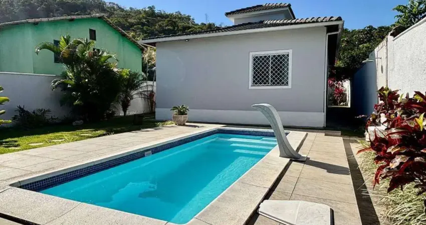 JA60623 - Excelente Casa c/ (03) quartos, (sendo 01 suíte), sala ampla c/ drywall, teto rebaixado e iluminação em LED, cozinha americana c/ armários planejados, fogão e forno embutidos, banheiro social e suíte c/ blindex, área gourmet c/ churrasqueira, pia, bancada, banheiro externo, piscina, chuveirão, jardim, garagem coberta p/ (02) carros, poço artesiano e águas do rio.
