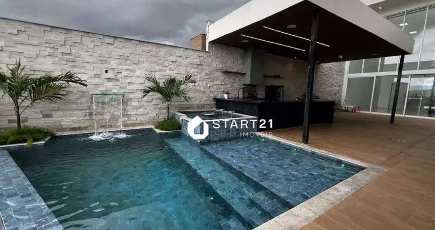Dispõe ainda de escritório, academia privativa de 14 m² com dois banheiros, pub com mesa de jogos, além de uma completa área gourmet ideal para receber convidados. A área externa é um verdadeiro destaque, com piscina moderna, incluindo hidromassagem, prainha, borda infinita, bar molhado e cascata em LED.