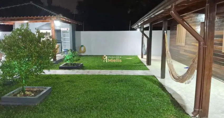 Casa de madeira nobre , com painel solar , piso laminado , semi mobiliada com 3 quartos , sala ampla, cozinha planejada , área de serviço , pátio grande com vaga coberta e descoberta , 4 ar condicionado , bem iluminada por dentro e por fora ,ótima posição solar ,gramado ,piso frio e piscina ,Portão eletrônico, cerca elétrica em todo terreno , quiosque com churrasqueira e pizza ,salão de festas com 2 quartos e banheiro ,ar condicionado , sala de estar ,cozinha planejada, churrasqueira e garagem coberta com portão eletrônico e câmeras.