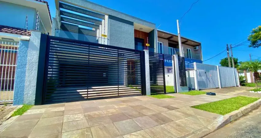 CONFIANÇA IMÓVEIS vende excelente sobrado com 03 suítes, ampla sala de estar integrada com a cozinha, área de serviço, terraço, duas vagas de carro lado lado, sacada, excelente acabamento, escadas em mármore, corrimão em Vvidro, piso porcelanato e laminado nos dormitórios, espera para splits e água quente, sobrado realmente diferenciado em Canoas. Pátio nos fundos com 50 m². Excelente localização, bairro Igara em Canoas, Agende uma visita com um de nossos corretores através dos números 6/ . 24/02/2026