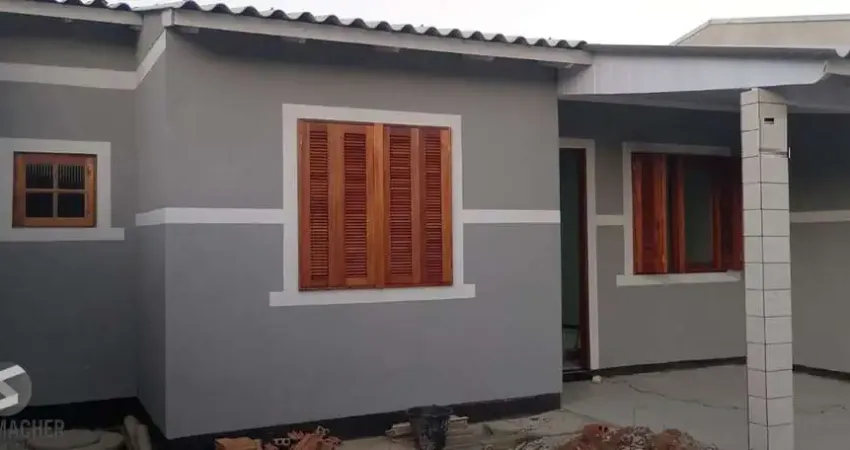 Ótima casa em Canoas, no bairro Mato Grande, em fase final de construção, com 80m² construídos, em terreno medindo 7,50 x 20m (150m²). Possui sala ampla com cozinha integrada, 3 dormitórios, banheiro, e área coberta nos fundos. Garagem para até carros no pátio da frente. Nos fundos pátio com 28m². Toda com piso porcelanato, materiais e acabamentos de qualidade.