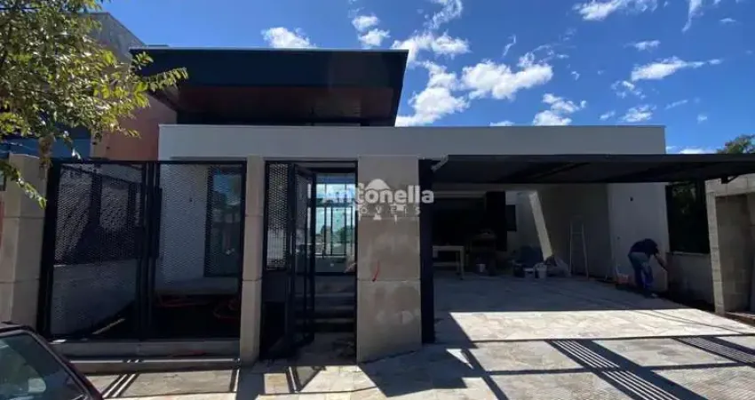 Imobiliária Antonella Imóveis vende: Imóvel à venda possuindo 03 dormitórios sendo um suíte, living, sala de jantar, cozinha, banheiro social, espaço gourmet integrado ao espaço externo, espera para split no living e nos dormitórios , espera para piscina, espera para lareira, espera para água quente, rebaixo em gesso em todos os ambientes, esquadrias em aluminio na cor preta, espera para lareira.