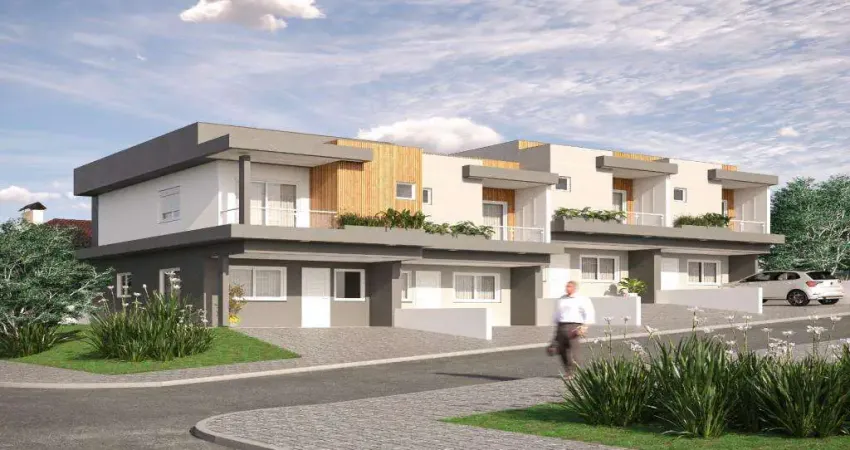 Destak Imóveis vende sobrado de esquina com 03 dormitórios, sendo 1 suíte, 03 banheiros, 01 cozinha, churrasqueira, sala dois ambientes, sacada e 02 vagas d garagem. Com 114m² de área privativa.
