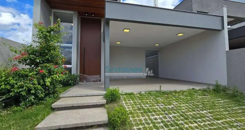 Casa térrea à venda no Garden Ville, com 3 dormitórios, sendo uma suíte, banheiro social, sala de estar, sala de jantar e cozinha com ambientes integrados. Lavanderia independente, varanda gourmet com churrasqueira, pátio na frente e nos fundos, e duas vagas de garagem cobertas.