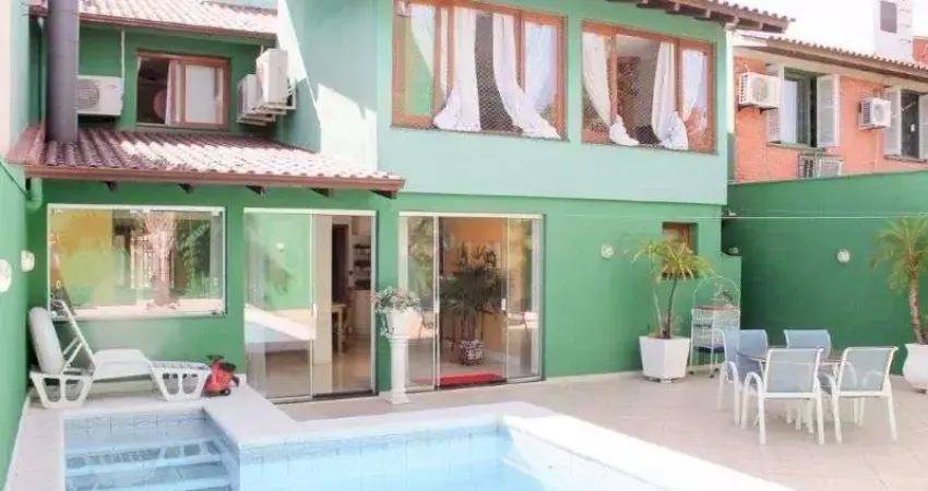 excelente casa individual, com 4 dormitórios sendo 1 suíte com amplo banheiro e uma linda jacuzzi, um dos dormitórios de solteiro com sacada frontal. Hall de entrada, lavabo, living dois ambientes com lareira, copa cozinha que fica integrada com ambiente de churrasqueira, sala de jantar e salão de jogos.
