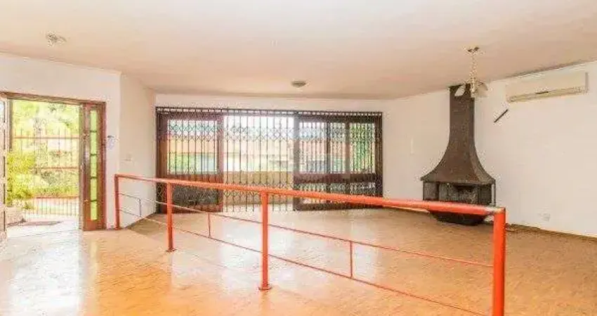 Casa com 408m², com 3 suítes, suíte master, hall de entrada, lareira, lavabo, gabinete, churrasqueira, pátio, dependência de empregada, depósito, 4 garagens (sendo 2 cobertas).
