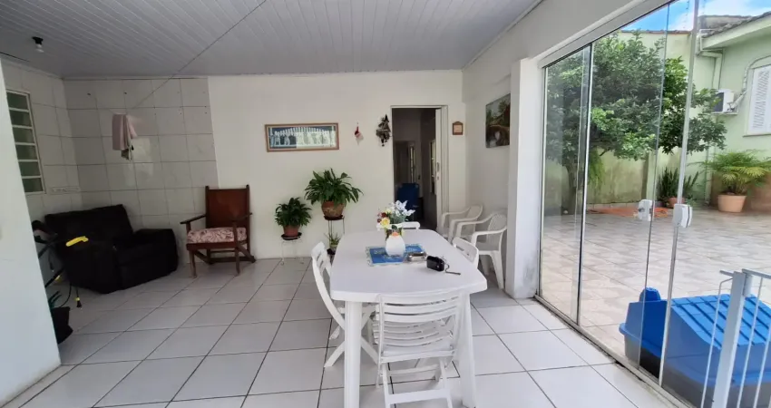 CASA ALVENARIA DIFERENCIADA, COM 03 DORMITÓRIOS, SUITE, BH SOCIAL, CHURRASQUEIRA, GARAGEM, COZINHA GRANDE, SALA DE JANTAR+ MORADIA AOS FUNDOS COM 01 DORMITÓRIO, COZINHA, SALA E BH. LAVANDERIA E AMPLO PÁTIO. PÁTIO GRADEADO E BEM FECHADO.