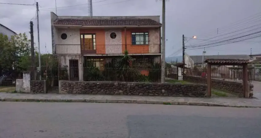 Casa residencial localizada a poucos metros da RS 040, com amplo pátio, de acesso fácil a ponto de ônibus e comércio em geral, dividida em dois pavimentos. Inclui garagem para micro- ônibus ou caminhão de médio porte. A parte superior é composta por cozinha com churrasqueira conjugada a área de serviço, a sala de jantar conta com um toque aconchegante de uma lareira de pedras, na ampla sala de estar a iluminação natural com sol da manhã vem da sacada, neste andar existem três dormitórios sendo um deles uma suíte, e por fim um banheiro social. Na parte inferior encontramos um banheiro e 2 salas amplas. Amplo pátio em esquina privilegiada a uma quadra da RS040. As características permite alugar parte do imóvel como comércio, CONSULTAR VALOR DO ALUGUEL PARA USO COMERCIAL.