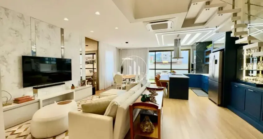 A residência apresenta acabamento de qualidade com piso laminado nos quartos, porcelanato nas áreas comuns, água quente nas torneiras e chuveiros, móveis planejados e persianas integradas. Conta com cozinha completa, área de serviço, lavabo e sistema de espera para ar condicionado em todos os cômodos.