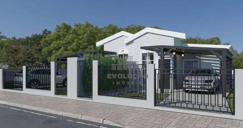 Casa geminada com 3 dormitórios, sendo 1 suíte, com 80,63 m², materiais de 1º linha, Rebaixo em gesso em todos os ambientes, Parede dupla entre as casas, Piso porcelanato, Revestimentos nos banheiros e cozinha, Soleira de granito nas janelas e portas, Vaga de garagem coberta com pergolado, Energia elétrica com ligação bifásica, Caixas dÁgua individuais, Espera para ar-condicionado, Terreno com 180 m²