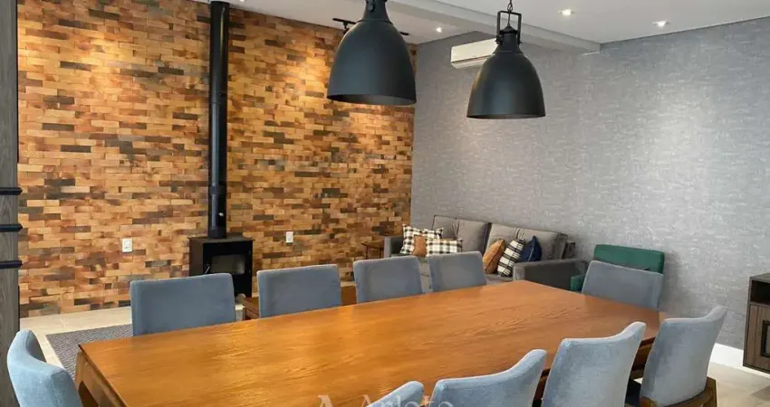 Possui 3 dormitórios sendo 1 suíte com closet, um dos dormitórios foi transformado em escritório, BWC Social, sala de estar e jantar, área de festas separada com churrasqueira em amplo espaço com sofá, mesa com 10 cadeiras, lareira e lavabo, além de 4 vagas de garagem. O acabamento é impecável e o imóvel está praticamente inteiro mobiliado, com elétros, sofás e ar condicionados, além de sistema de alarme e câmeras, fica exatamente como está nas fotos.