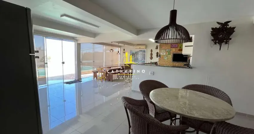 Amplo salão de festas, com lavabo e sala de estar integrados, com acesso à piscina.