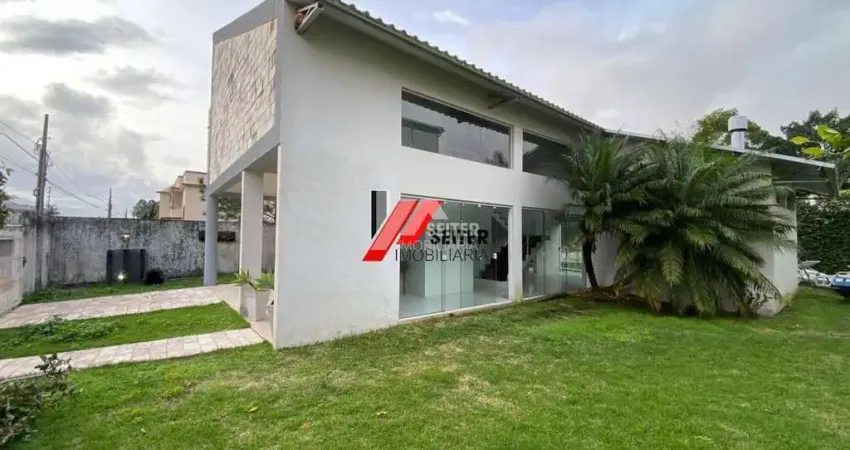 Ampla casa semimobiliada com 450m2, localizada em rua tranquila no Campeche, a apenas 3 km da praia. Possui projeto moderno em conceito aberto, com pé-direito duplo e grandes paredes de vidro que integram os ambientes ao jardim.
