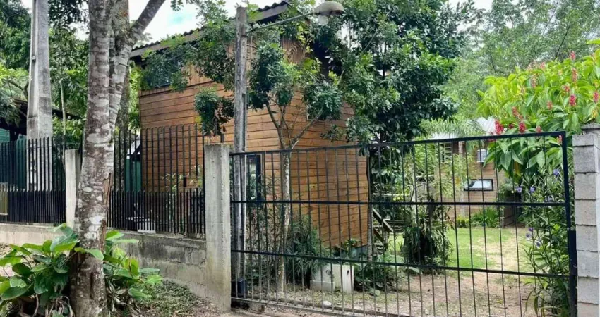 No amplo terreno de 975M², possui a casa principal com um estilo rústico, sendo 1 dormitório, banheiro, sala de estar com mezanino, cozinha, varanda, espaço gourmet, um quintal arborizado com piscina, área de fogo, churrasqueira ao ar livre, tudo isso em meio a natureza.