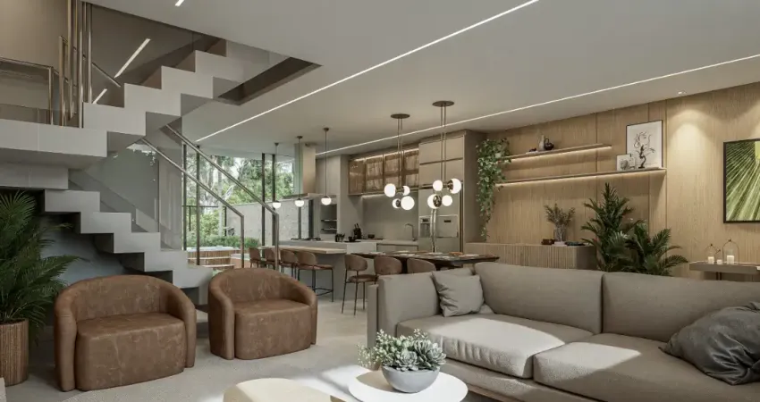 Com arquitetura contemporânea e acabamentos de alto padrão, a residência conta com 155,66 m2, com 3 suítes, sala de estar ampla, cozinha integrada, área gourmet com churrasqueira e lavabo no piso térreo. Cada ambiente foi projetado para proporcionar bem-estar e funcionalidade, com infraestrutura para ar-condicionado, persianas embutidas nas suítes e área de serviço independente.