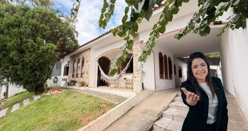 A CASA: Financiável, super ampla e muito bem cuidada, com 241m² de área construída e ambientes bem distribuídos. Possui 3 quartos, sendo 1 suíte, sala de estar confortável e sala de jantar ampla, ideal para receber família e amigos. A cozinha possui móveis e bons espaços. A casa é bem ventilada e iluminada, com ótima luz natural ao longo do dia. Na área externa, há edícula com 1 quarto, lavanderia e cozinha com móveis, além de área de churrasqueira, jardim, varanda e 3 vagas de garagem.