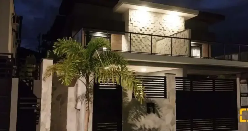 Casa com excelente padrão de construção, contendo 3 suítes confortáveis, uma sacada super ampla com vista para a natureza, piscina com Spa toda construída em pedra Hijau e cascata Zen, paisagismo completo, sala ampla com cozinha anexa e espera para ilha. Churrasqueira e espaço gourmet, garagem coberta para dois carros.