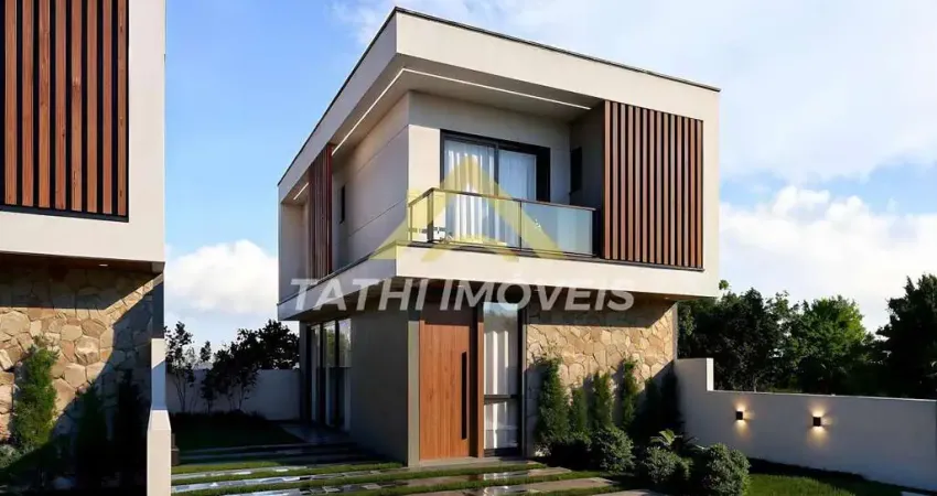 Casa ampla com design moderno, ambientes integrados, bem distribuídos e iluminados, jardim espaçoso que integra área interna e externa perfeitamente.